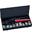 Deze set biedt een overzichtelijke en praktische oplossing voor het snel monteren en persen van kabelschoenen en verbindingshulzen in diverse maten.